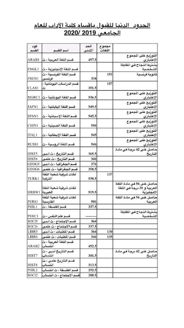 للتحويل بين أقسام كلية الآداب اضغط هنا
