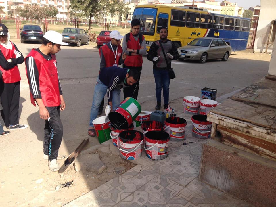 في إطار فاعليات مبادرة “بأيدينا نجملها ” لتجميل المدينة الجامعية بجامعة عين شمس يستمر أكثر من ١٢٠ طالب وطالبة متطوعين واتحاد طلاب الجامعة في المشاركة في أعمال التزيين والتجميل بمبنى الجمهورية بمدينة الطلبة تحت رعاية الدكتور عبد الوهاب عزت رئيس الجامعة وإشراف عام الدكتور عبد الفتاح سعود نائب رئيس الجامعة لشئون التعليم والطلاب والدكتور نظمى عبد الحميد نائب رئيس الجامعة لشئون خدمة المجتمع وتنمية البيئة وإشراف سمير عبد الناصر الأمين العام للجامعة والدكتور طايع عبد اللطيف و الدكتور تامر عبد المنعم راضي مستشاري نائب رئيس الجامعة لشئون التعليم والطلاب وإبراهيم سعيد منسق الأنشطة الطلابية وطارق احمد مدير إدارة الأسر والاتحادات الطلابية.