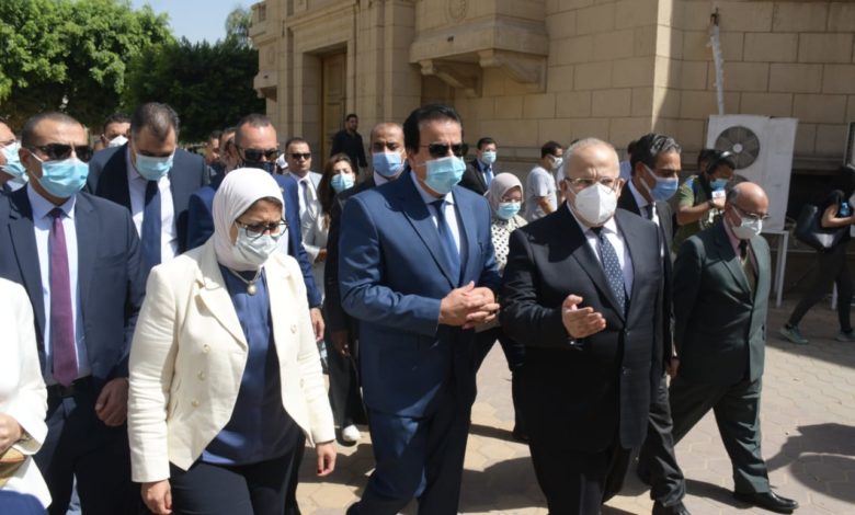 تفقد الدكتور خالد عبد الغفار وزير التعليم العالي والبحث العلمي، والدكتورة هالة زايد وزيرة الصحة والسكان، والدكتور محمد عثمان الخشت رئيس جامعة القاهرة، منذ قليل، عددًا من العيادات المخصصة لتطعيم الطلاب بلقاح سينوفاك المضاد لفيروس كورونا، في إطار الخطة الشاملة للدولة لحماية كافة مواطنيها تنفيذا لتوجيهات الرئيس عبد الفتاح السيسي بتطعيم عناصر المنظومة الجامعية استعدادًا لبدء العام الدراسي الجديد 2021 / 2022.