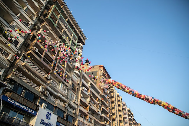 ورسم ماهر، مظاهر الاحتفالات بلوحاته الفنية المعتادة في المناسبات المصرية، وتظهر فيها بالونات تملأ ساحات الصلاة وتواجد للأطفال مع ذويهم احتفالا بعيد الأضحى المبارك.
