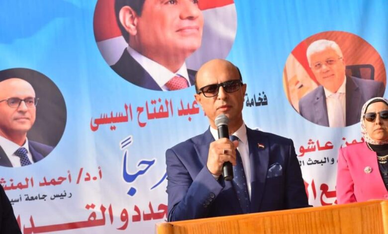 وخلال الاحتفال، أطلق الدكتور أحمد المنشاوي رئيس جامعة أسيوط، شعار ” بعلمك وعملك .. تبني وطنك “؛ مع بداية انطلاق العام الدراسي الجديد ٢٠٢٣/ ٢٠٢٤م، والذي يأتي تزامناً مع احتفالات الدولة المصرية؛ بالذكري الخمسين لانتصارات أكتوبر المجيدة، موضحاً: إن الهدف من إطلاق الشعار هو تحقيق التطور المنشود؛ وفقاً لتوجهات الدولة المصرية، تحت رعاية فخامة الرئيس عبد الفتاح السيسي رئيس الجمهورية، في بناء ركائز الجمهورية الجديدة، وتنفيذ رؤية مصر ٢٠٣٠م، والذي يعد التعليم والتنمية المستدامة أحد محاورها الرئيسة، منوهاً على دعم جامعة أسيوط؛ لجهود مؤسسات الدولة المصرية، ومساعيها في إيجاد حلول علمية وواقعية؛ لما تواجهه الدولة من مشكلات، وتحديات ،فضلاً عن استثمار طاقات الشباب لخدمة الوطن، وتطوير المجتمع ، وسعياً في المساهمة في توفير السبل اللازمة؛ لتحسين الواقع الخدمي، والمعيشي للمواطنين .