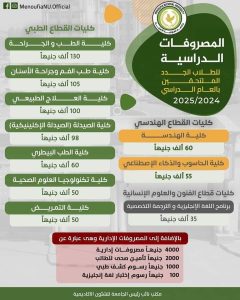 مصروفات الكليات في جامعة المنوفية الأهلية