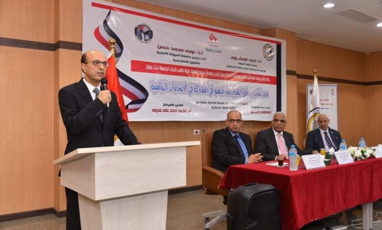 وأشار رئيس جامعة أسيوط، إلى ما تحظى به الانتخابات الرئاسية المصرية؛ من اهتمام عالمي بالغ، وما نشهده- جميعاً- من حرص صادق من الدولة المصرية على انعقادها؛ في مناخ من النزاهة، والشفافية ، والحيادية؛ وذلك تحت إشراف الهيئة الوطنية للانتخابات.