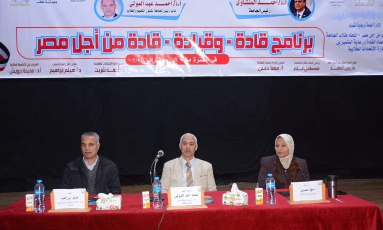 وألقي الدكتور أحمد عبد المولى، محاضرة حول “الاتحادات الطلابية.. طريق للقيادة”، والتي ناقشت عدد من المحاور المهمة منها: فن القيادة، ومحاربة الأفكار المتطرفة، مهارات حل المشكلات واتخاذ القرار، فضلاً عن بناء وعي الطلاب وتثقيفهم بالقضايا العامة في المجتمع، إلى جانب التركيز على التنمية البشرية وتطوير الذات للطلاب، ونشر روح الانتماء للوطن بين الشباب، وتصحيح المفاهيم الخاطئة واستعادة العادات والتقاليد الأصيلة المصرية؛ من خلال محاضرات علمية لقامات متميزة.