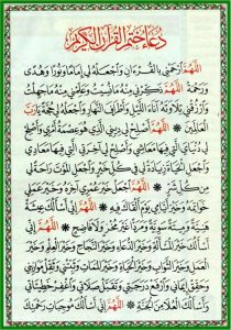 – اللهم إني أسألك من فضلك وعظيم كرمك أن تجعل القرآن الكريم لي شفيعًا يوم القيامة، وأن تحشرني مع الذين أنعمت عليهم من النبيين والصديقين والشهداء والصالحين وحسن أولئك رفيقًا.