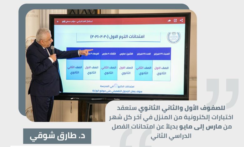 وتؤجل امتحانات الفصل الدراسي الأول للصف الثالث الإعدادي وتعقد في نهاية العام بالتزامن مع الثانوية العامة في لجان مراقبة، وتبدأ الدراسة مجددا بعد 9 مارس بالمدراس من خلال فصول التقوية والحصص.