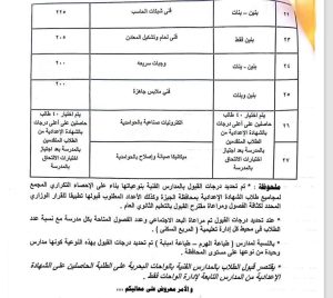 وإليكم جداول تنسيق القبول بالمدارس الثانوية والفنية: