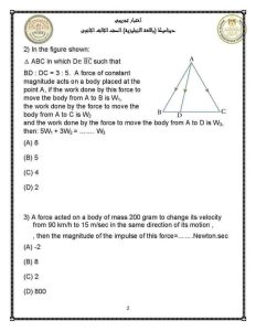 عدد أسئلة امتحان الديناميكا للثانوية العامة 2024