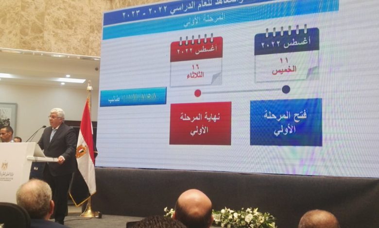 وقال وزير التعليم العالي إن الحد الأدنى من تنسيق المرحلة الأولى 365 درجة فأكثر أي بنسبة 89.02% فأكثر لطلاب شعبة علمى علوم بإجمالى عدد الطلاب 22475.