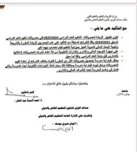 تطبيق الزيادة بدءًا من العام الدراسي 2024/2025