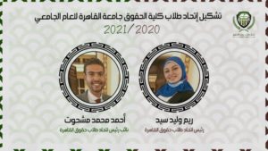أعلنت اللجنة العليا لانتخابات اتحاد طلاب كلية الحقوق جامعة القاهرة برئاسة الدكتور صبري السنوسي، عميد كلية الحقوق، والدكتور عبدالهادي العوضي وكيل الكلية لشئون التعليم والطلاب، عن تشكيل اتحاد الطلاب للعام الدراسي 2021/2020.
