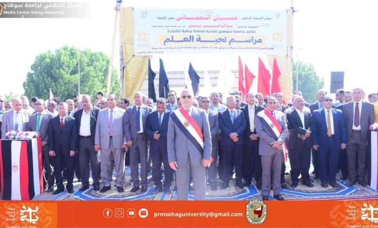 شهد الدكتور حسان النعماني رئيس جامعة سوهاج، مراسم استقبال العام الدراسي الجديد 2024/2025، الذى نظمته الإدارة العامة لرعاية الشباب المركزية تحت شعار المبادرة الرئاسية بداية جديدة لبناء الإنسان، حيث بدأت المراسم برفع العلم المصري وأداء تحية العلم على أنغام السلام الوطني، فى أجواء مليئة بالحماس والوطنية، بمشاركة جميع القيادات الجامعية وأعضاء هيئة التدريس، وجمع غفير من طلاب الجامعة، وذلك بمقر الجامعة الجديد.
