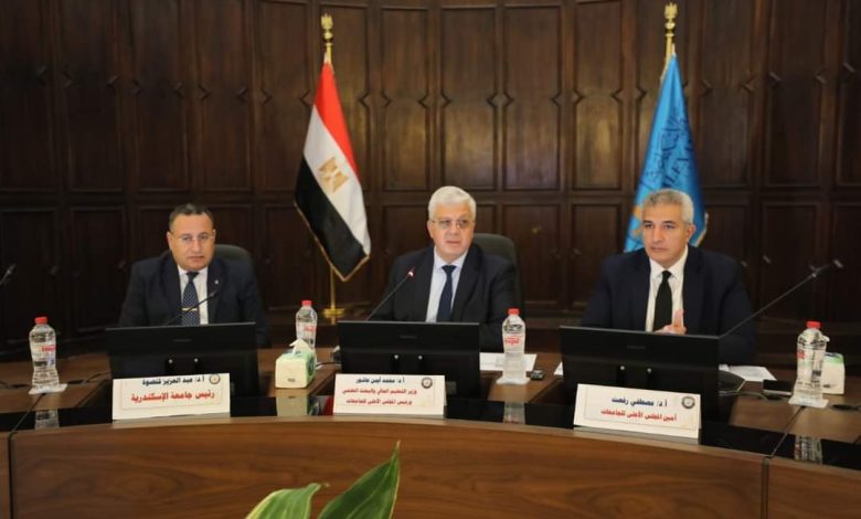 وقدم المجلس الشكر لأسرة جامعة الإسكندرية برئاسة الدكتور عبدالعزيز قنصوة رئيس الجامعة، لاستضافة اجتماع المجلس الأعلى للجامعات.