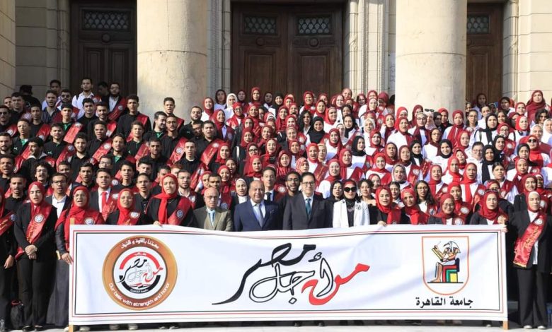 وأعرب رئيس الجامعة عن سعادته بالحشد الكبير لطلاب من أجل مصر الذي ينطوي على فكرة واحدة وهي “الوطن”، لافتا إلى أن الوطن هو أساس وجود الأفراد وحياتهم، ويحدد مسارهم في المستقبل، وأن فكرة الوطن ليست مجرد شعار بل إنها ممارسة وانتماء وعطاء متبادل بين الفرد والمجموع، وهي أساس الاستقرار والتقدم والحياة الآمنة للجميع.