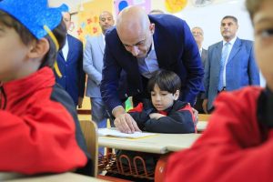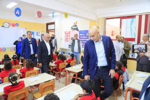 وعقب ذلك، توجه الوزير والمحافظ لزيارة مدرسة “جرادة الابتدائية” بمدينة الشيخ زويد والتى تضم عدد (٢٣٣) طالبا وطالبة، وحرص الوزير على الاطلاع على كراسات الحصة والواجبات وللتأكد من التقييمات الأسبوعية، والاطمئنان على مستوى الطلاب في القراءة والكتابة.