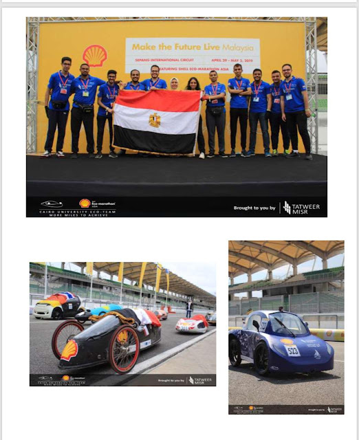 وصرح الدكتور السيد تاج الدين عميد الكلية، أن مسابقة شل العالمية، من أهم المسابقات الابتكارية على مستوى العالم، وشارك بفعالياتها هذا العام فرق طلابية من مصر يمثلون جامعات القاهرة وعين شمس، الاسكندرية، حلوان، الجامعة الألمانية، معهد الأهرامات، والاكاديمية المصرية، إلى جانب فرق من آسيا وشمال أفريقيا، مشيرًا إلى أن هذه المشاركة تعد السادسة لكلية الهندسة بجامعة القاهرة بمارثون شل العالمي، مضيفًا أن فريق هندسة القاهرة فاز بجائزة الأمان”Safety Award”، لتطبيقه كافة معايير السلامة والأمان الدولية وهو أول فريق يطبق قواعد نظام5S العالمي أثناء عمله بالسيارات.