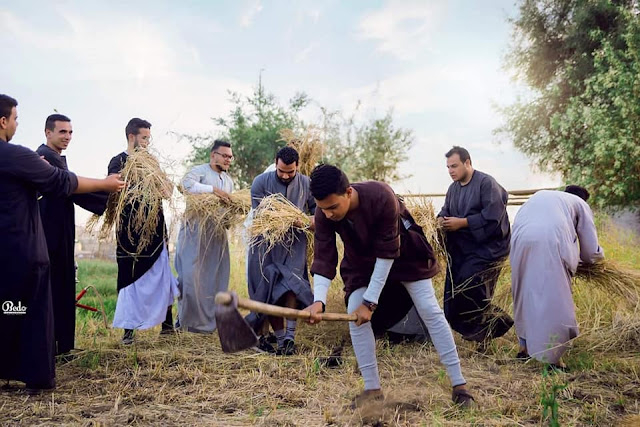 نظم عدد من طلاب الفرقة الرابعة بكلية الحقوق جامعة سوهاج حفلا مصورا لتوثيق تخرجهم في أجواء ريفية داخل “الغيط” وسط الزروع والأشجار والحيوانات.
