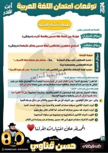 مع اقتراب امتحانات نهاية العام، تستمر عملية البحث من طلاب الثانوية العامة 2024 عن المراجعات النهائية لمادة اللغة العربية، وتهدف هذه المراجعة إلى مساعدتكم على مراجعة المادة بكل سهولة، وتغطي هذه المراجعة على أجزاء مادة اللغة العربية التي يجب على طلاب الثانوية العامة التركيز عليها، ولذلك تستعرض منصة “راديو الجامعة” للمتابعين توقعات امتحان مادة اللغة العربية للثانوية العامة 2024.