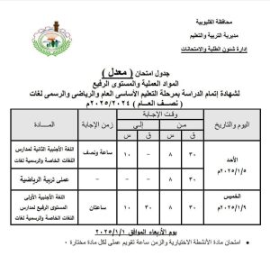 محافظة القليوبية تعلن تعديل جداول امتحانات منتصف العام للشهادة الإعدادية والنق