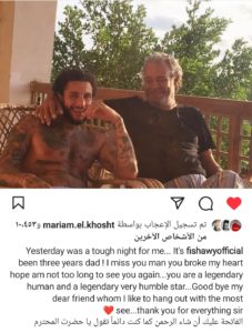 وترك أحمد الفيشاوي تعليقًا على صورته مع والده قائلًا :” ليلة أمس كانت صعبة بالنسبة لي.. لقد مر ثلاث سنوات يا أبي.. أفتقدك أتمنى أن ألقاك قريبا.. انت إنسان أسطوري ونجم متواضع.. مع السلامة مع صديقي العزيز الذي أحببت صحبته.. شكرا لك على كل شيء، الفاتحة عليك إن شاء الرحمن كما كنت دائماً تقول يا حضرت المحترم”.