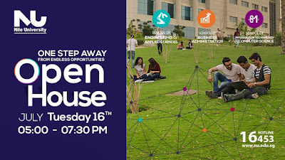 تنظم جامعة النيل الأهلية مساء اليوم الثلاثاء 16 يوليو فاعليات الــ ” Open House”  لعدد من أهالي الطلاب الراغبين في التحاق أبنائهم بالجامعة والتعرف عليها وعلى كلياتها ؛ وكذا استقبال الطلاب الراغبين في التعرف على جامعة النيل تمهيدا للالتحاق بها واختيارها في رغباتهم للعام الجامعي الجديد 2019 / 2020  ؛ ويتم خلال فاعلية الــ  ” Open House” جولة ولقاء تعريفي بالجامعة ، و الكليات والتخصصات الموجودة بها ، وزيارة مراكز الأبحاث الموجود بالجامعة ، والاستفسار عن كافة المعلومات.