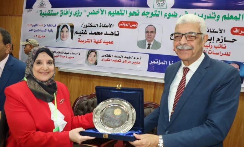 ومن جانبها تحدثت الدكتورة ناهد غنيم عميد الكلية حول أهداف المؤتمر المتمثلة في التعرف على مفهوم التعليم والتعلم الاخضر ومبررات التحول نحوه في ظل التوجهات العالمية للاهتمام بالبيئة وقضايا التنمية المستدامة، تطوير منظومة التنمية المهنية للمعلم وتدريبه للتجاوب المستمر مع متطلبات التعليم الأخضر ونماذجه المعاصرة، تقديم نماذج عالمية في إعداد وتدريب المعلمين للتفاعل بإيجابية.