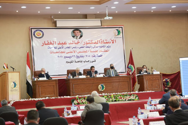 عقد المجلس الأعلى للجامعات اجتماعه الشهري اليوم السبت 26-12-2020 في رحاب جامعة الفيوم برئاسة الدكتور خالد عبدالغفار وزير التعليم العالي والبحث العلمي وحضور الدكتور طارق شوقي وزير التربية والتعليم والتعليم الفني والدكتور أحمد الأنصاري محافظ الفيوم و الدكتور محمد لطيف أمين المجلس والسادة رؤساء الجامعات.