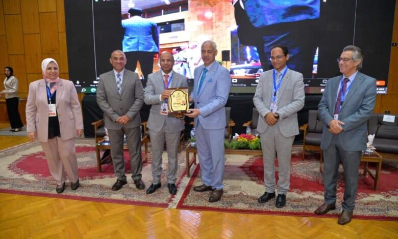 وفى ختام أعمال الجلسة الافتتاحية ، تم إهداء درع المؤتمر للدكتور أحمد المنشاوي ، والدكتور أحمد عبدالمولى ، والدكتور محمود عبدالعليم ، والدكتورة أمل سويدان،و الدكتور حسن حويل ،وشهادة تقدير للدكتور محمد رياض ، والدكتور محمد مصطفى حمد ، والدكتور جمال حسن الأستاذ بكلية التربية ورئيس وحدة النشر، والتميز البحثي بالكلية.