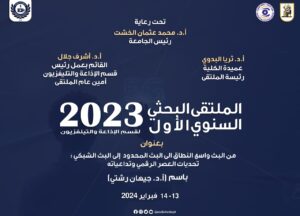 أعلن الدكتور أشرف جلال، رئيس قسم الإذاعة والتليفزيون بكلية الإعلام جامعة القاهرة، تفاصيل الملتقى البحثي السنوي الأول لقسم الإذاعة والتليفزيون، المنعقد برعاية الدكتور محمد عثمان الخشت رئيس جامعة القاهرة، وبرئاسة الدكتورة ثريا البدوي عميدة الكلية، وبإشراف الدكتور أشرف جلال الأمين العام للملتقى.