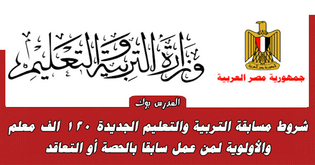 أعلنت وزارة التربية والتعليم عن مسابقة لحاجتها إلي وظائف المعلمين الجديدة المقدرة بحوالي 120 ألف معلم ، وأعلنت وزارة التربية والتعليم اليوم الأربعاء 9 أكتوبرعن العجز والزيادة تبين حاجة وزارة التربية والتعليم إلى 120 ألف معلم علي مستوي الجمهورية ، وسوف تقوم بعمل مسابقة لكي تفاضل بين المتقدمين للحصول علي وظيفة معلم مساعد في وزارة التربية والتعليم في شهر اكتوبر 2019.