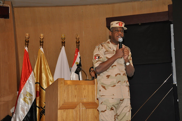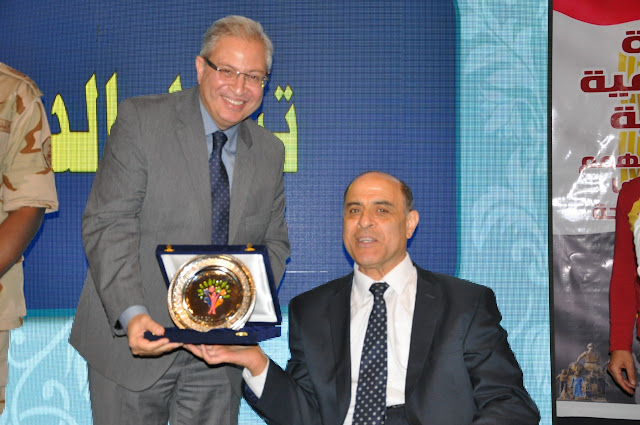 وأعرب اللواء أركان حرب خالد توفيق عن تقديره لاستضافة الجامعة لهذا الحدث وقدم الشكر لفرسان الإرادة متحدثا عن بعض النماذج المشرفة من أصحاب الهمم ، مؤكدا على أهمية أن يقوم كل فرد من شعب مصر بعمله بكل إتقان وحب، لصالح هذا الوطن، وتحدث سيادته عن بعض الأعمال البطولية للقوات المسلحة للقضاء على الإرهاب موضحا أن الله خلقنا للعباده وإعمار الأرض وليس للتخريب كما تفعل العناصر الإرهابية بفكرها التكفيري المتطرف